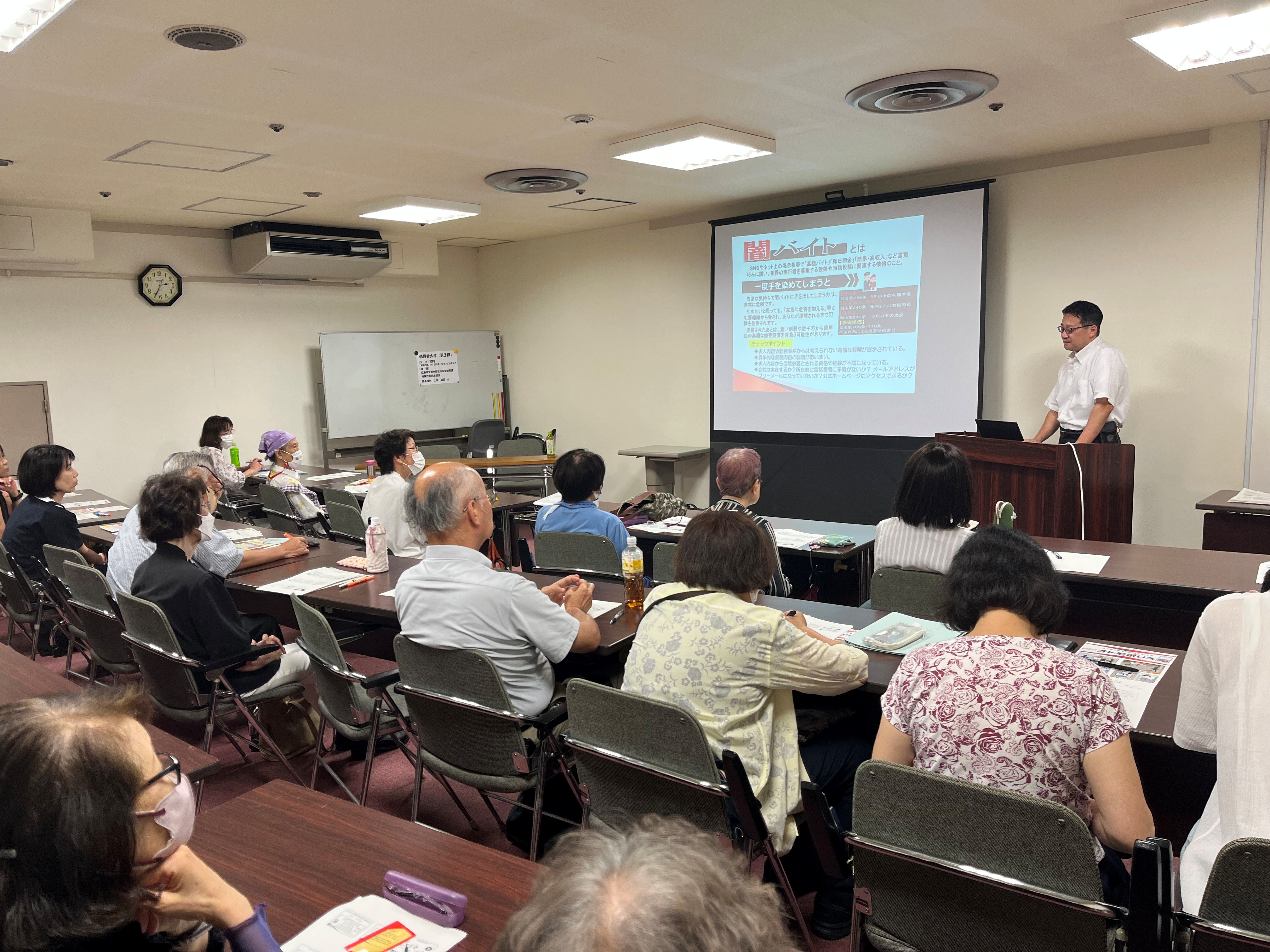 講師:広島市消費生活センター 消費者政策企画担当課長 関口岳史 消費生活相談員 麻田典子