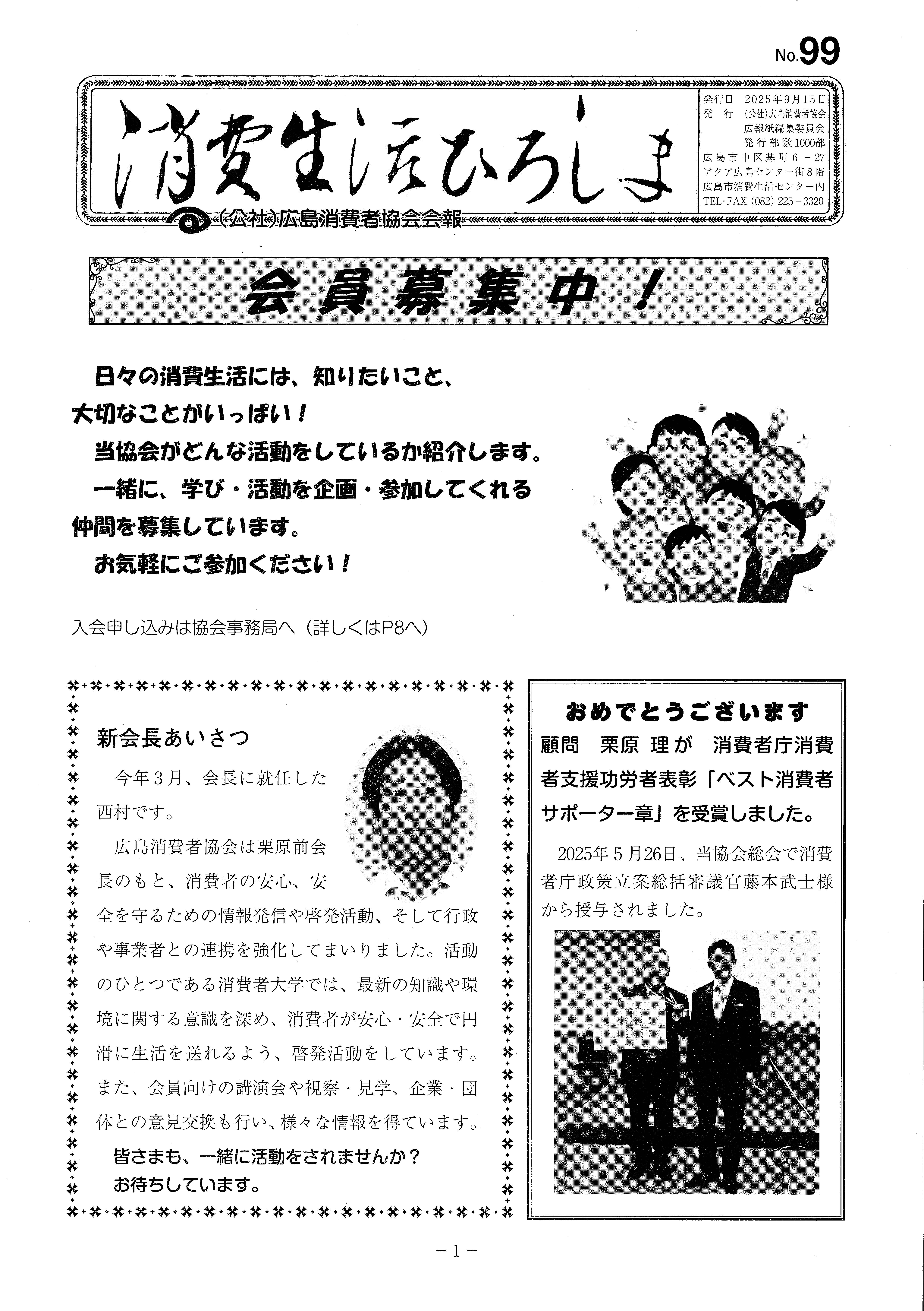 直近の協会の活動を取りまとめた「消費生活ひろしま99号」を発行いたしました(令和7年9月)。